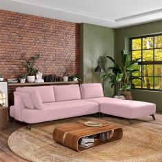 O menor preço encontrado no Brasil para Sofá de Canto Modulado 262cm Sabrina Pés em Aço com Puff Veludo Rosê G52 - Gran Belo atualmente é R$ 8.386,31.