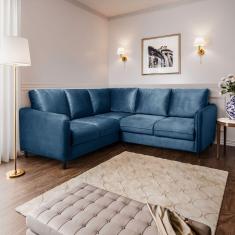 Sofá de Canto Orquídea 5 Lugares em Veludo CabeCasa MadeiraMadeira Azul