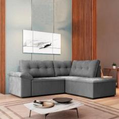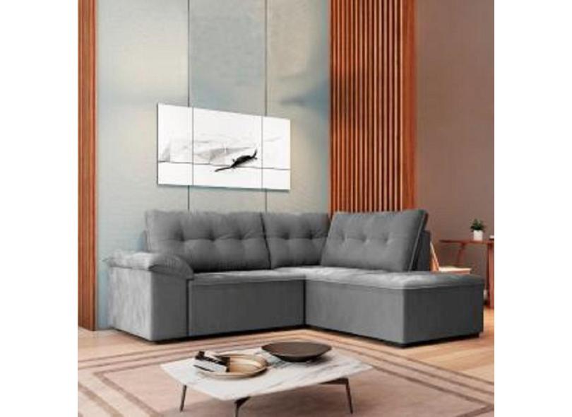Sofá De Canto Retrátil 5 Lugares Tóquio Cinza Cinza