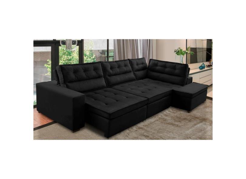O menor preço encontrado no Brasil para Sofá de Canto Retrátil e Reclinável com Molas LD 3,00x2,00m Viviane Suede Preto Madelina Decor atualmente é R$ 2.763,26.