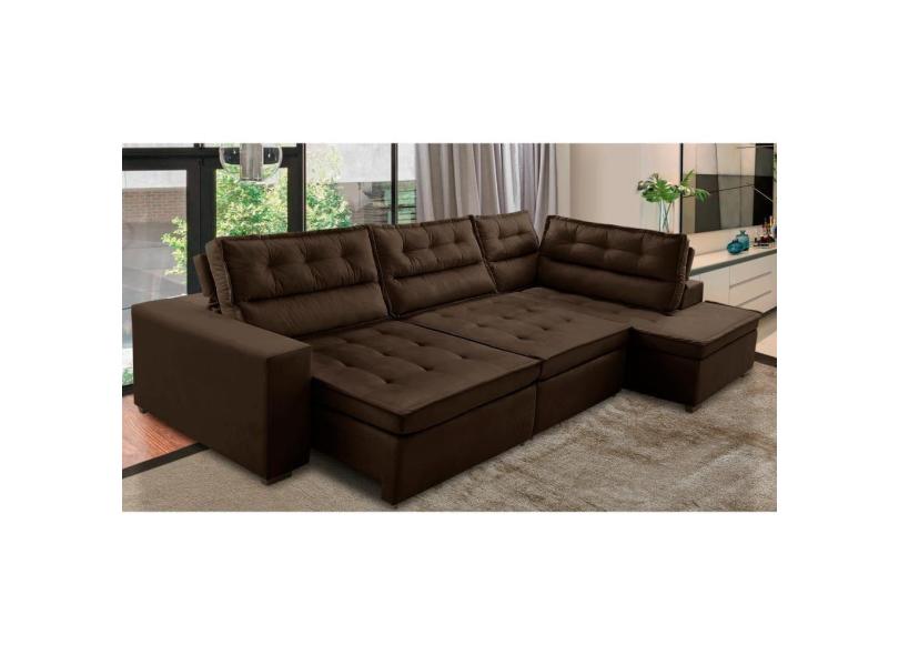 O menor preço encontrado no Brasil para Sofá de Canto Retrátil e Reclinável com Molas LD 3,40x2,00m Viviane Suede Marrom Madelina Decor atualmente é R$ 3.303,02.