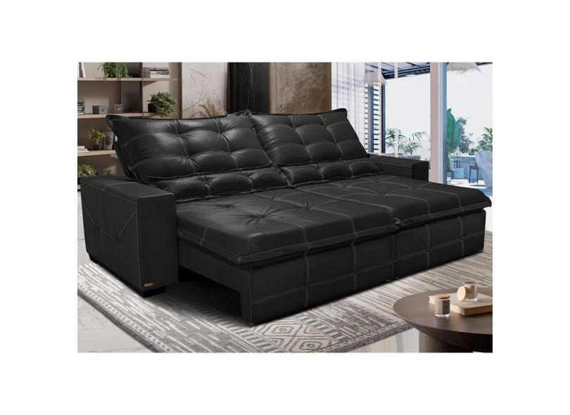 Sofá De Courino Retrátil E Reclinável 3,15m Cama Inbox Bourbon Softgel D40 Preto
