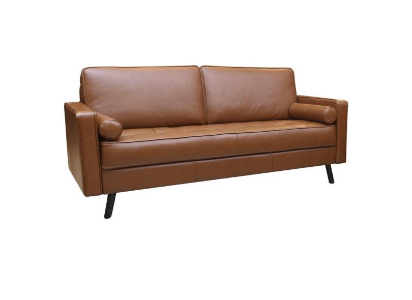 Sofá de Couro 3 lugares Vancouver M06 Cor Conhaque 457 - Amarena Móveis