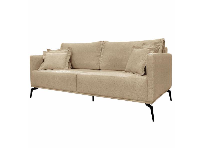 Sofá Decorativo 3 Lugares 200cm Pés em Aço Stagno Linho Bege - Gran Belo