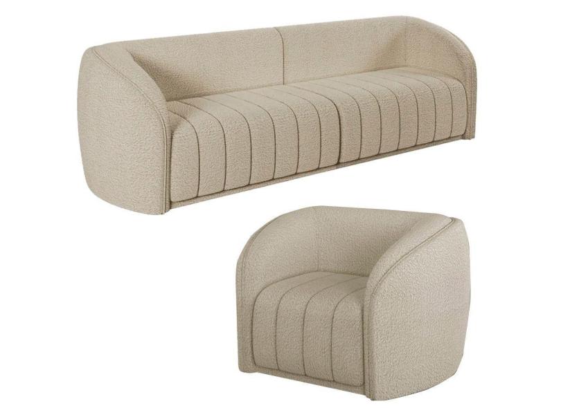 Sofá Decorativo 3 Lugares 252cm E Poltrona Meris M22 Bouclê Bege - Mpozenato