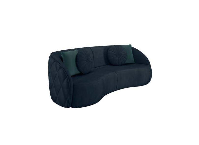 Sofá Decorativo 318cm com Almofadas Redondas Clarke Veludo Azul Marinho G45 - Gran Belo