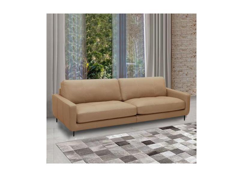 Sofá Decorativo Isaac 3 Lugares Sala de estar 210cm Pés em Aço Couro N