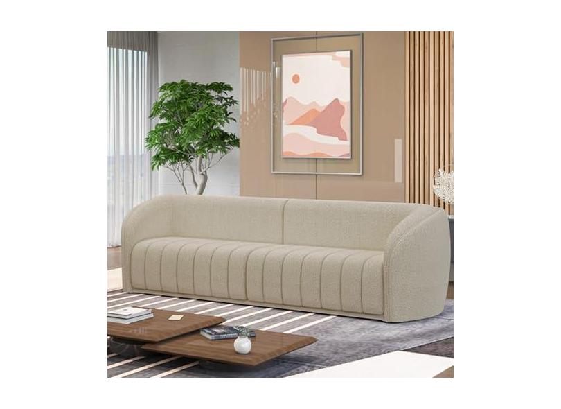Sofá Decorativo Sala de Estar 252cm Adam 3 Lugares Boucle Bege G45 - Gran Belo