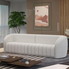 Sofá Decorativo Sala de Estar 252cm Adam 3 Lugares Boucle Branco G45 - Gran Belo