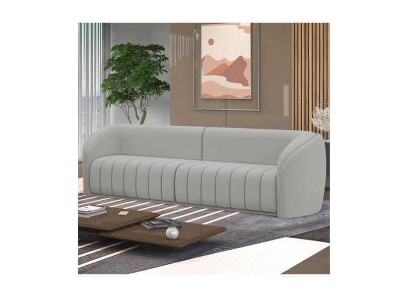 Sofá Decorativo Sala De Estar 292cm Adam 4 Lugares Veludo Cinza Claro