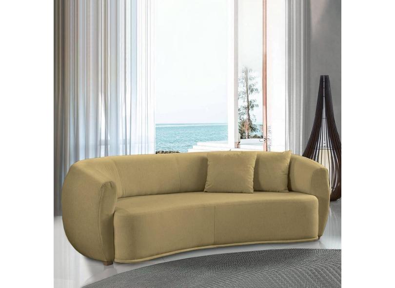 Sofá Decorativo Sala De Estar Curvo Esther 3 Lugares 210cm Com Almofadas Linho Bege