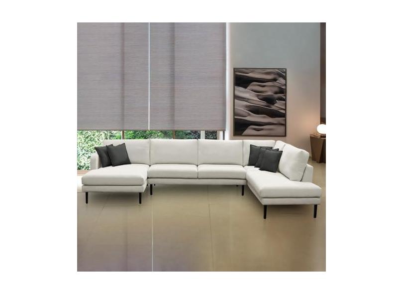 Sofá Decorativo Sala de Estar Osaka 370cm Modulado em U com Almofadas Pés em Madeira Linho Off White G89 - Gran Belo