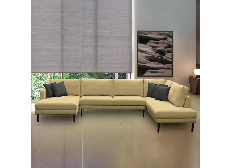 O menor preço encontrado no Brasil para Sofá Decorativo Sala De Estar Osaka 430cm Modulado Em U Com Almofadas Pés Em Madeira Linho Bege atualmente é R$ 106.567,12.