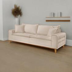 Sofá Fixo Orfeu 3 Lugares Luxo 1,80m Castellar Móbile Veludo Bege Claro