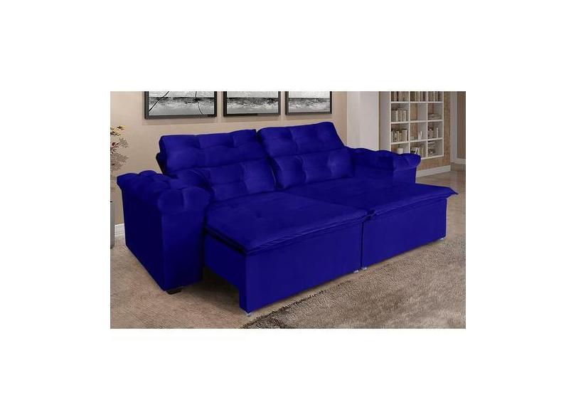 Sofá Grécia 2,00 Metros Retrátil E Reclinável Veludo Azul Sofá Na We
