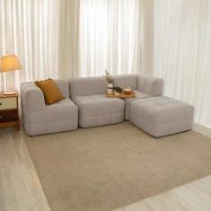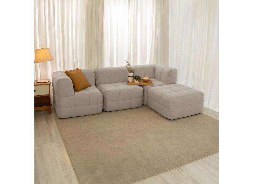 sofá guldi popup com 2 módulos canto central e puff linho cru