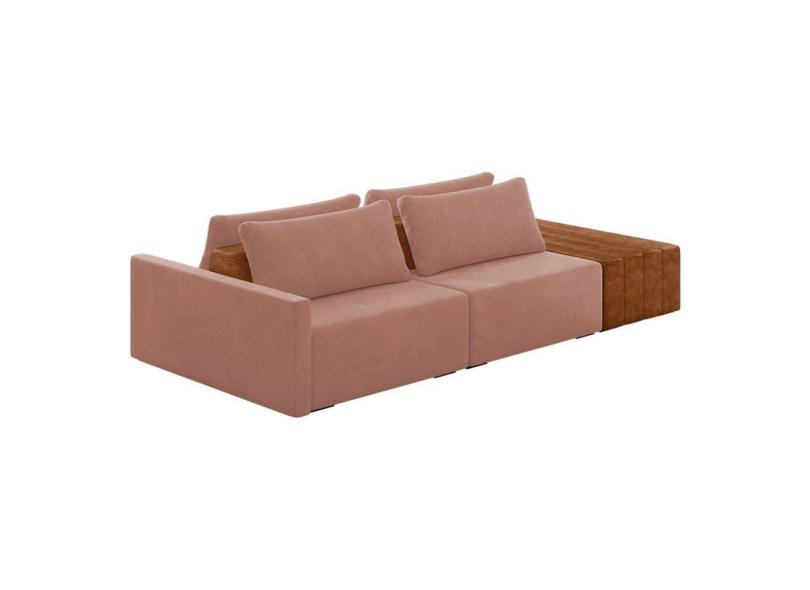 Sofá Ilha 2 Lugares Living 252cm Modulado para Sala Lary Veludo Rosê K01 - D`Rossi