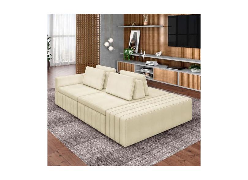 Sofá Ilha com Encosto e Almofadas Móveis Olimpo 245cm Modulado Bouclê Off White G45 - Gran Belo