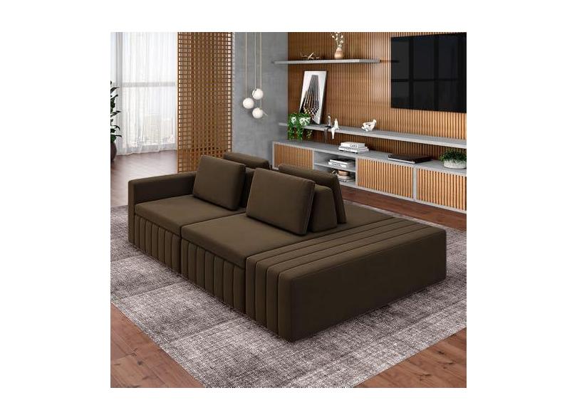 Sofá Ilha com Encosto e Almofadas Móveis Olimpo 245cm Modulado Veludo Marrom G45 - Gran Belo