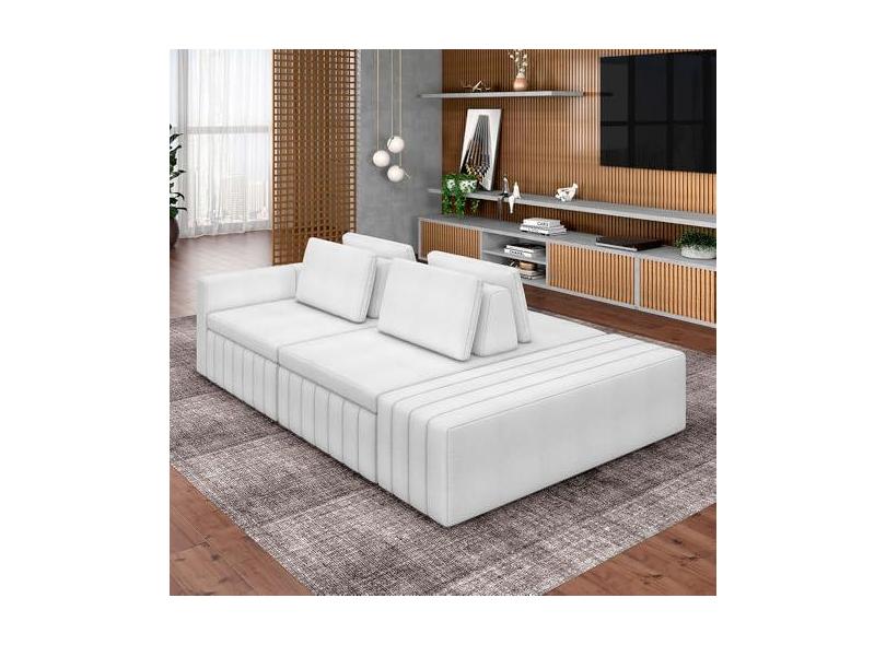 Sofá Ilha com Encosto e Almofadas Móveis Olimpo 285cm Modulado Bouclê Branco G45 - Gran Belo