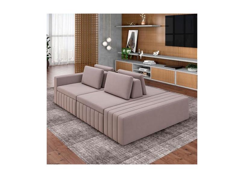 Sofá Ilha com Encosto e Almofadas Móveis Olimpo 285cm Modulado Veludo Rosê G45 - Gran Belo