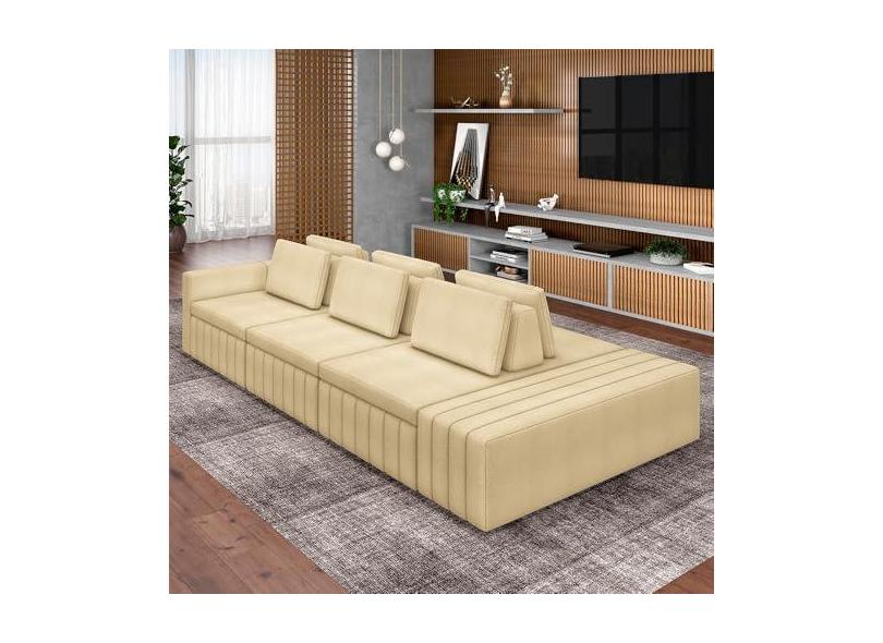 Sofá Ilha com Encosto e Almofadas Móveis Olimpo 365cm Modulado Bouclê Bege G45 - Gran Belo