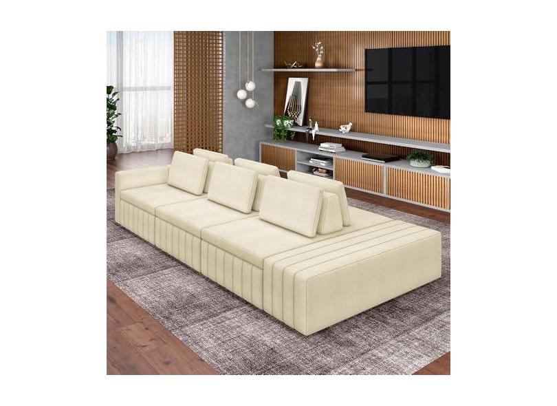 Sofá Ilha com Encosto e Almofadas Móveis Olimpo 395cm Modulado Bouclê Off White G45 - Gran Belo