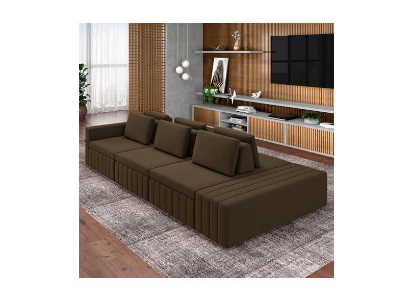 O menor preço encontrado no Brasil para Sofá Ilha com Encosto e Almofadas Móveis Olimpo 395cm Modulado Veludo Marrom G45 - Gran Belo atualmente é R$ 9.821,11.