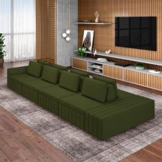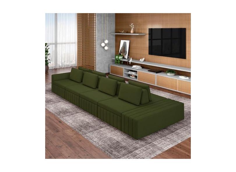 Sofá Ilha com Encosto e Almofadas Móveis Olimpo 425cm Modulado Linho Verde G45 - Gran Belo