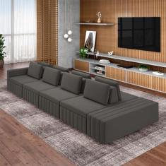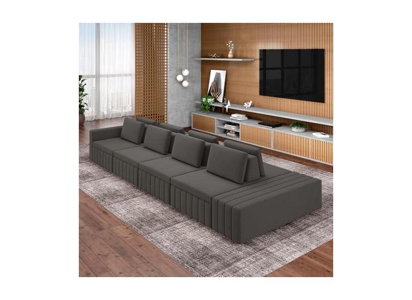 Sofá Ilha com Encosto e Almofadas Móveis Olimpo 425cm Modulado Veludo Grafite G45 - Gran Belo