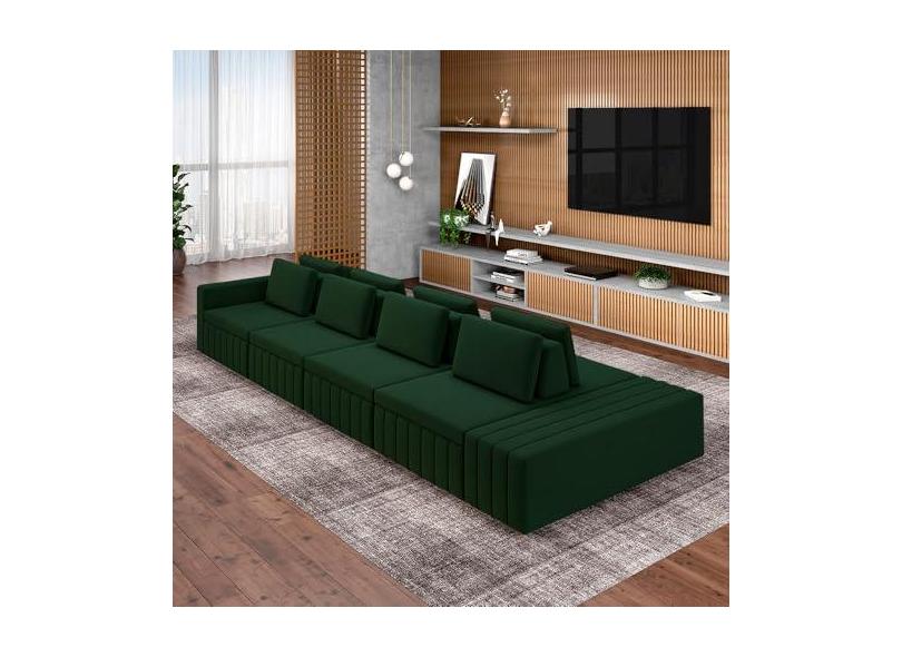 Sofá Ilha com Encosto e Almofadas Móveis Olimpo 425cm Modulado Veludo Verde G45 - Gran Belo
