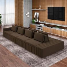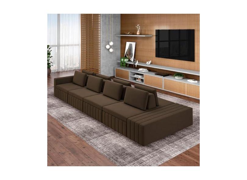 Sofá Ilha com Encosto e Almofadas Móveis Olimpo 505cm Modulado Veludo Marrom G45 - Gran Belo