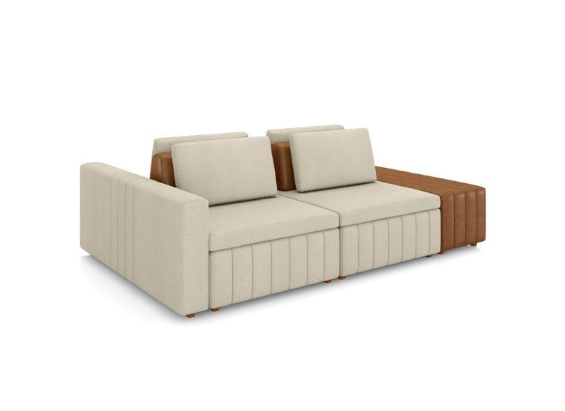 Sofá Ilha Com Puff Para Sala Living 265cm Amber M03 Linho Cru Couríssimo Whisky - Lyam Decor