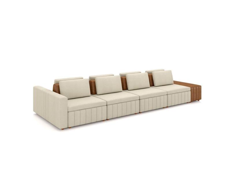 Sofá Ilha com Puff para Sala Living 465cm Amber M03 Linho Cru Couríssimo Whisky - Lyam Decor