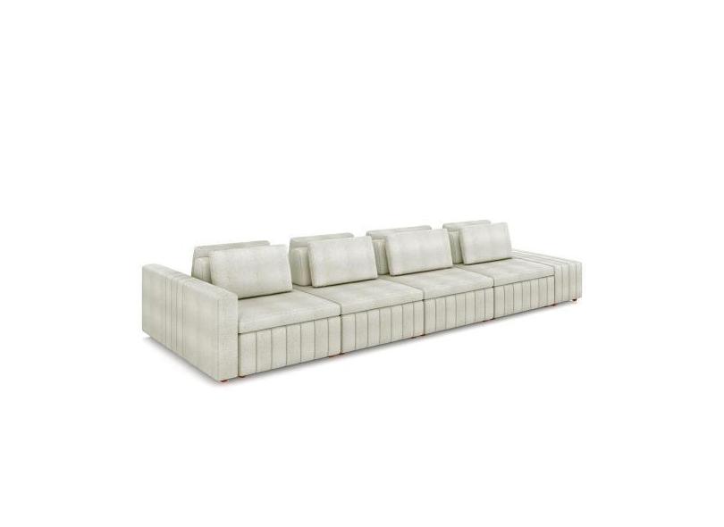 Sofá Ilha Com Puff Para Sala Living 505cm Amber M03 Bouclê Bege Claro