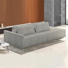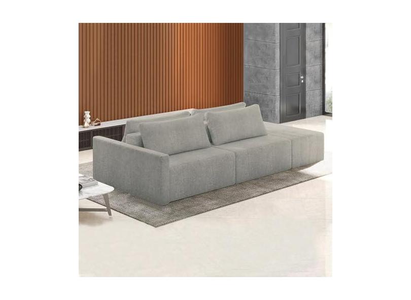 Sofá Ilha Modulado Milos 252cm Puff Lateral Bouclê Cinza G33 - Gran Belo