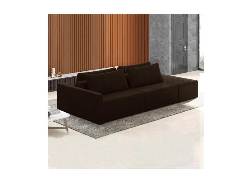 Sofá Ilha Modulado Milos 252cm Puff Lateral Veludo Marrom G33 - Gran Belo