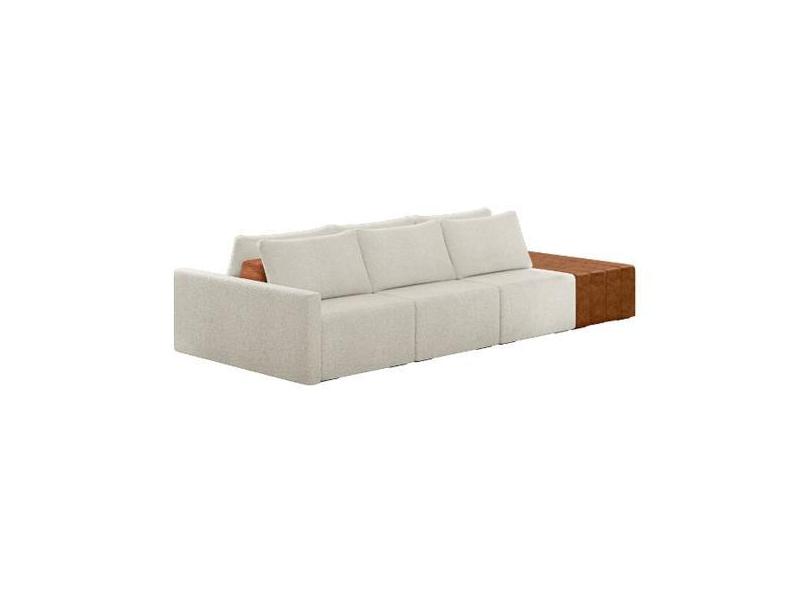 Sofá Ilha Modular Living Com Puff 312cm Georgia K04 Bouclê Bege/Carame