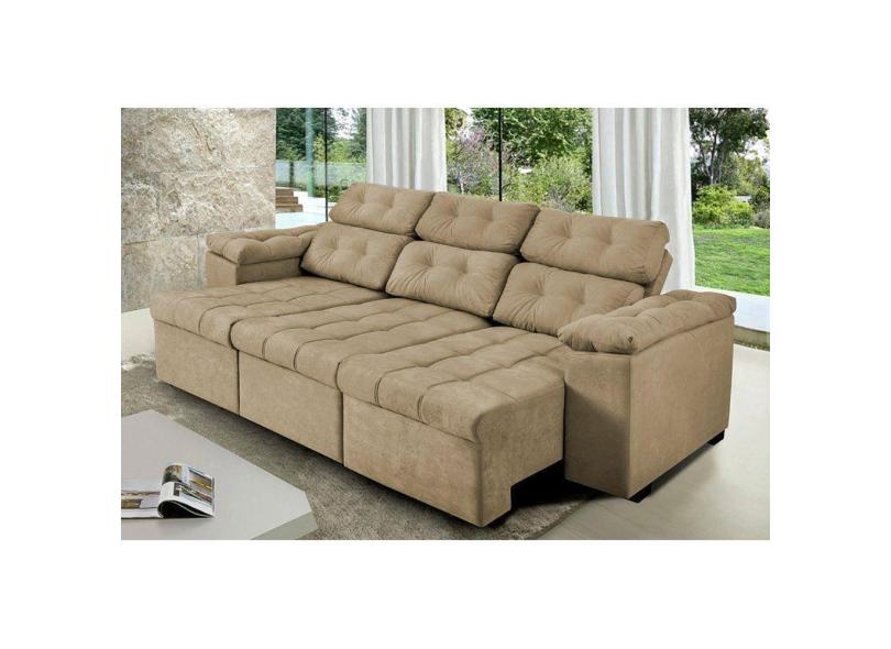 Sofa Itália 2,40 Mts Retrátil e Reclinável Tecido Suede Castor - Moveis Marfim