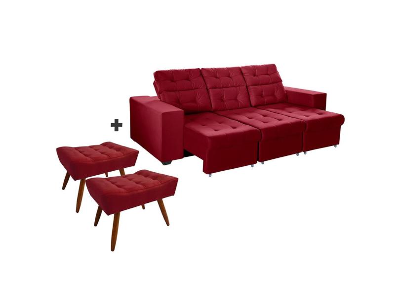 Sofá Itália Plus 3 Lugares 210cm Retrátil, Reclinável com 2 Puffs - Vermelho