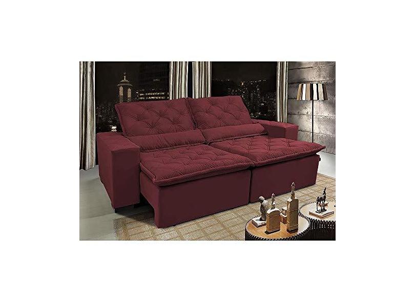 Sofá Lisboa 2,52m Retrátil, Reclinável com Molas no Assento Tecido Suede Velusoft Vinho - Cama InBox
