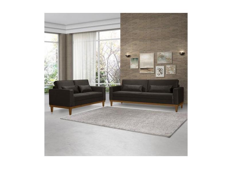 Sofá Living 3 e 2 Lugares Valência - 2,20/1,58mts - Veludo Marrom - Es