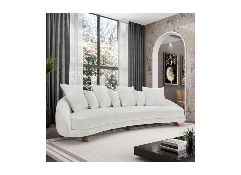 Sofá Living 3 Lugares 265cm Pés Madeira Morales com Almofadas Bouclê Off White G52 - Gran Belo