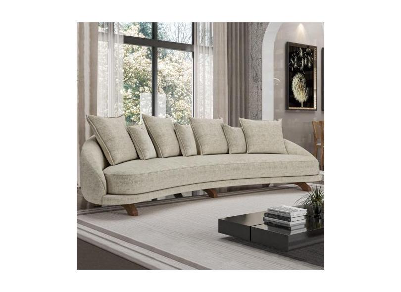 Sofá Living 3 Lugares 265cm Pés Madeira Morales Com Almofadas Linho Be