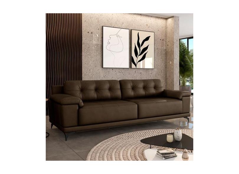 Sofá Living 4 Lugares 252cm Agostino Pés Design Em Ferro Couro Capucci