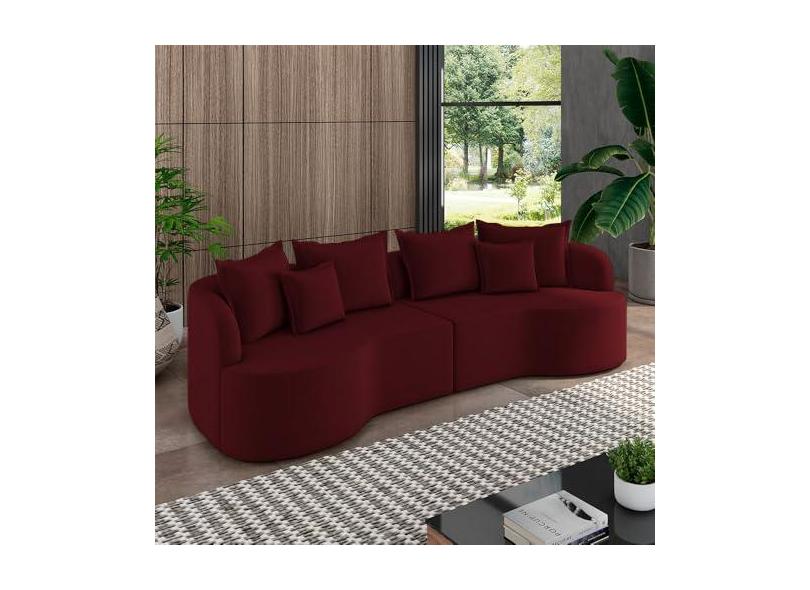 Sofá Living Decorativo Salinas 2 Lugares com Almofadas 210cm Modulado Veludo Bordô G33 - Gran Belo