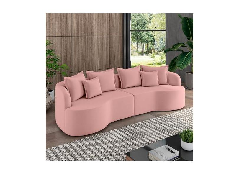 Sofá Living Decorativo Salinas 2 Lugares com Almofadas 210cm Modulado Veludo Rosê G33 - Gran Belo