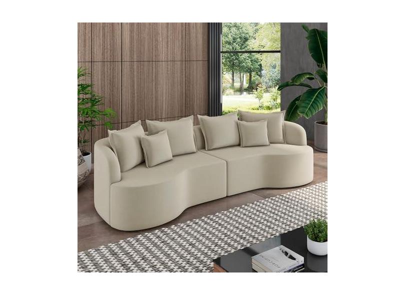 Sofá Living Decorativo Salinas 4 ou mais Lugares com Almofadas 290cm Modulado Veludo Bege G33 - Gran Belo