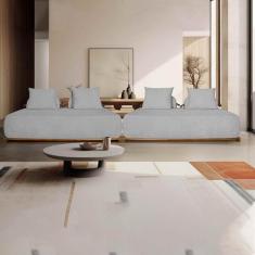O menor preço encontrado no Brasil para Sofá Modulado 6 Lugares com Almofadas Soltas Pés Madeira Maciça 440cm Homer Bouclê Cinza G63 - Gran Belo atualmente é R$ 8.152,71.