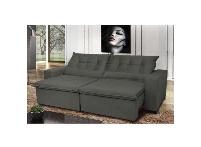Sofá Montenegro 3,02 Mts Retrátil, Reclinável Com Molas No Assento E 2 Almofadas Lombar Tecido Suede Cinza - Siena Moveis